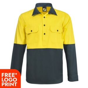 Mens Half Placket Vented Cotton Drill Shirt Semi Gusset Sleeve