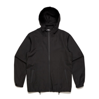 • Zip-up hooded jacket, waterproof zips at front and side pockets, adjustable elastic drawcords at hem and hood, rubber headphone patch, sealed seams